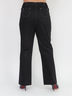 Прямые брюки стретч. Пояс со шлевками, эластичные вставки на поясе, карман с молнией и декоративной подвеской. Блестящие швы. 2 накладных кармана сзади со стразами-заклепками. Длина по внутреннему шву ок.76 см, ширина по низу ок.50 см. Параметры фотомодели: рост 172 см, российский размер 48.