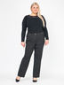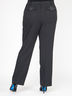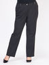 Прямые брюки с поясом со шлевками и эластичными вставками. Серебристые металлические пластинки спереди на шлевках, кокетка сзади, карманы спереди и 2 накладных кармана сзади с клапанами и отделкой металлическими пластинками. Стрелки. Размеры на рост 157-167 см. Длина по внутреннему шву ок.76 см, ширина по низу ок.46 см. Параметры фотомодели: рост 173 см, российский размер 52.