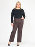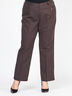Прямые брюки с удобными эластичными вставками на поясе и маленьким карманом на молнии. Низ с боковыми разрезами. Размеры на рост 157-167 см. Длина по внутреннему шву ок.72 см, ширина по низу ок.48 см. Параметры фотомодели: рост 173 см, российский размер 52.