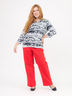Прямые брюки с вышивкой на карманах сзади. Металлическая пуговица с гравировкой. Длина по внутреннему шву ок.74 см, ширина по низу ок.52 см. Параметры фотомодели: рост 172 см, российский размер 48.