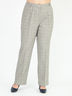 Прямые брюки из ткани с обработкой против пятен. Удобные эластичные вставки на поясе. Карман на молнии спереди, стрелки, низ с боковыми разрезами. Длина по внутреннему шву ок.76 см, ширина по низу ок.48 см. Параметры фотомодели: рост 172 см, российский размер 48.