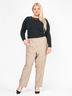 Прямые брюки удобного кроя без застежки, с эластичным поясом и декоративной пряжкой спереди. 2 кармана на молнии. Стрелки. Размеры на рост 157-167 см. Длина по внутреннему шву ок.70 см, ширина по низу ок.46 см. Параметры фотомодели: рост 173 см, российский размер 52.