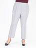 Брюки без застежки с эластичными вставками на поясе по бокам и сзади. Вышивка на поясе спереди. 2 кармана. Стрелки. Низ с небольшими разрезами. Размеры на рост до 157 см. Длина по внутреннему шву ок.64 см, ширина по низу ок.42 см. Параметры фотомодели: рост 173 см, российский размер 52.