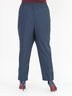 Брюки без застежки с эластичной резинкой по бокам и сзади пояса. Вышивка на поясе спереди. 2 кармана. Стрелки. Низ с небольшими разрезами. Размеры на рост 157-167 см. Длина по внутреннему шву ок.66 см, ширина по низу ок.46 см. Параметры фотомодели: рост 172 см, российский размер 48.