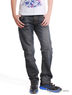 Прямые джинсы с вытертыми складками и «заломами». Пояс со шлевками, застежка на молнию и пуговицу. Нашивка на часовом кармашке, принт на заднем кармане. Крой для стандартной фигуры (см. таблицу размеров Million X). Размер по росту в см.