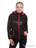 Женская пуховая куртка с капюшоном. Однотонная стеганая модель с застежкой на молнию и карманами.