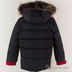 Зимний пуховик для мальчика. Рукава с отворотом для регулировки длины и с трикотажными манжетами изнутри, сохраняющими тепло. Пуховик застегивается на молнию с ветрозащитным клапаном, который предотвращает продувание. Капюшон и опушка (натуральный мех) отстегиваются. Спереди и внутри множество карманов. По низу пуховика - утягивающая кулиска.