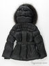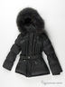 Теплый пуховик с двойной застежкой на молнию и клапан с кнопками. Капюшон отстегивается от изделия, мех отстегивается от капюшона. Два прорезных кармана на молнии, в шлевки продет пояс-резинка с металлической пряжкой. Рукава буфы с внутренней трикотажной манжетой, низ изделия на кулиске.