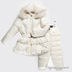 Теплый детский пуховик с застежкой на молнию. Капюшон отстегивается от изделия, мех отстегивается от капюшона. Пояс регулируется по ширине резинкой с внутренней стороны. Манжеты рукавов выполнены из трикотажной резинки. Эластичный пояс застегивается на металлический карабин.