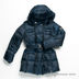 Теплый детский пуховик с застежкой на молнию. Капюшон отстегивается от изделия, мех отстегивается от капюшона. Спереди – четыре кармана на молнии. Пояс регулируется по ширине резинкой с внутренней стороны. Манжеты рукавов выполнены из трикотажной резинки. Эластичный пояс застегивается на металлический карабин. Изделие украшено декоративными пуговицами.