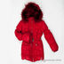Теплый пуховик с застежкой на молнию. Капюшон отстегивается от изделия, мех отстегивается от капюшона. Манжеты рукавов выполнены из трикотажной резинки. Эластичный пояс застегивается на металлический карабин. Спереди два удобных кармана с застежкой на молнию. Изделие присборено на резинки.