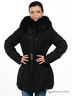 Детали: застегивается на молнию и клапан с кнопками; два втачных кармана на молнии и два внутренних; несъемный капюшон с отстегивающимся мехом; низ изделия посажен на резинку; внутренние трикотажные манжеты; в комплекте пояс-резинка