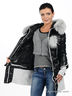 Детали: застегивается на молнию и клапан с кнопками; два втачных кармана и один внутренний; несъемный капюшон с отстегивающимся мехом; низ изделия дополнен съемной широкой трикотажной резинкой; высокие трикотажные манжеты; в комплекте пояс-резинка
