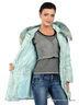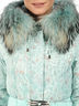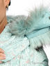 Детали: верх двухслойный - нижний слой с оригинальным принтом, верхний прозрачный; застегивается на молнию и клапан с кнопками; два втачных кармана на молнии и два внутренних; несъемный капюшон с отстегивающимся мехом; внутренние трикотажные манжеты; низ изделия посажен на резинку; в комплекте пояс-резинка
