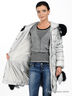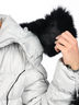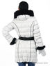 Детали: застегивается на молнию и клапан с кнопками; два втачных кармана на кнопке и один внутренний; несъемный капюшон с отстегивающимся мехом; внутренние трикотажные манжеты; в комплекте контрастный пояс-резинка; изделие декорировано оригинальными контрастными молниями; через рукава продеты варежки на ленте; низ изделия посажен на резинку
