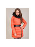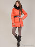 Оригинальный, удлиненный пуховик прилегающего силуэта со смещенной застежкой-молнией и таким же смещенным центром капюшона. Контрастные по цвету молнии на застежке и карманах. Широкий пояс, подчеркивающий линию талии. Съемная опушка из натурального меха енота по краю капюшона придают изделию яркость и завершенность.
