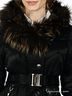Детали: отложной воротник с капюшоном, отстегивается мех, длинные рукава, застегивается на молнию и кнопки, два прорезных кармана, талия подчеркнута широким поясом
