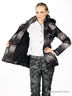 Детали: отложной воротник с капюшоном на молнии, застегивается на молнию и кнопки, два втачных кармана на кнопках, талия подчеркнута резинкой