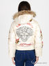 Детали: застегивается на молнию и клапан с пуговицами; два кармана на кнопках; низ изделия и внутренние манжеты в виде трикотажной резинки; капюшон утеплен мехом; декорирован вышивками и аппликациями
