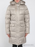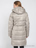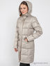 Женский длинный пуховик с дополнительной молнией на планке, что позволяет расширять горловину. Выполнен из фактурной ткани. Есть регулировка по низу изделия и на капюшоне.
