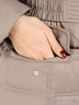 Детали: ворот -стойка; съемный капюшон на кнопках; застегивается на молнию и клапан с кнопками; два внешних кармана и один внутренний; в шлевки продет пояс-резинка с металлической пряжкой