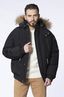 Материал верхней ткани: 55% Хлопок, 45% Нейлон; Наполнитель: 80% Гусиный пух, 20% Перо; Материал подкладочной ткани: 100% Полиэстер; Мех на капюшоне - енот