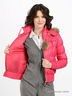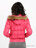 Утепленная куртка ярок-розового цвета. Капюшон оторочен мехом. По краю воротника стойки кулиска с меховыми помпоном. Застегивается на молнию. Манжеты и низ изделия посажены на широкую резинку. Четыре кармана на кнопках.