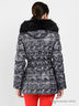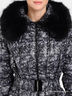 Прекрасный пуховик с капюшоном и длинными рукавами. Изделие застегивается на молнию. Линия талии подчеркнута эластичным поясом с металлической пряжкой. Четыре прорезных кармана на молнии.