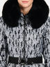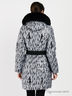 Прекрасный пуховик с оригинальным принтом и уютным капюшоном с отстегивающимся мехом енота. Талия подчеркивается поясом. По бокам расположены карманы с застежкой на молнию.