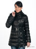 Детали: воротник стойка, капюшон на кулиске убирается в ворот, застежка на молнию, ветрозащитный клапан с застежкой на кнопки, в манжетах эластичные резинки, спереди два втачных кармана на молнии, талия подчеркнута ремнем с металлической пряжкой