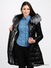 Стильный утепленный пуховик приталенного силуэта. Капюшон с отстегивающимся мехом. Два врезных кармана. Ремень на резинке. Один внутренний карман. Утеплитель - пух.