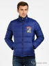 Спортивный пуховик выполнен из плащевки, шелковистый подклад, утеплен пухом и пером. В ворот-стойку "прячется" тонкий капюшон. Застежка на молнию. Внутренние трикотажные манжеты рукавов. Два передних кармана. Низ изделия на кулиске с резинкой. Полочка украшена нашивкой. Стильный вариант на каждый день.
