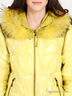 Стильный и очень теплый пуховик выполнен из прозрачной клеенчатой ткани с окрашенным пуховым утеплителем. Модель свободного силуэта с глубоким съемным капюшоном со съемным натуральным мехом енота. Застегивается на молнию. Спереди два врезных кармана на молнии. Длинный съемный рукав дополнен ветрозащитной манжетой из рибаны. Эффектный и оригинальный пуховик согреет Вас в любую погоду.