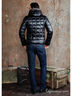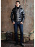 Модный мужской укороченный пуховик. Модель дополнена капюшоном. Застежка изделия спереди на молнию. Два прорезных кармана на молнии. Пуховик дополнен контрастными вставками вдоль молнии.