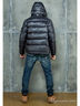 Эффектный мужской пуховик прямого кроя. Капюшон застегивается на кнопки. Высокий воротник. Застежка спереди на молнию. Длинные рукава с манжетами на кнопке.
