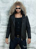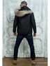 Эффектный мужской пуховик, простеганный в мелкий ромбик. Капюшон на кулиске оторочен мехом. Высокий воротник-стойка. Застежка спереди на молнию. Два прорезных кармана.