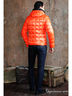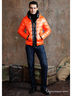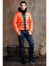 Модный мужской укороченный пуховик. Модель дополнена капюшоном. Застежка изделия спереди на молнию. Два прорезных кармана на молнии. Пуховик дополнен контрастными вставками вдоль молнии.
