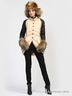Стеганный двухцветный пуховик, застежка на кнопки, воротник-стойка. Приталенный вверх расходится фалдами на бедрах.
