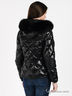 Стильный женский пуховик. Высокий воротник-стойка. Отстегивающийся капюшон с меховой оторочкой. Застежка спереди на молнию и на кнопки. Четыре прорезных кармана. Длинные рукава с резинками на манжетах. Спинка дополнена оригинальным прорезным карманом на кнопке.