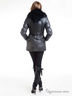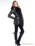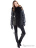 Стильный женский пуховик приталенного покроя. Длинные прямые рукава присборены на резинку над локтем. Прорезные рукава. Эффектная оторочка по вороту и вдоль разреза.