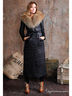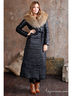Эффектный длинный пуховик. Широкий меховой воротник. Застежка спереди. Изделие дополнено поясом.