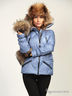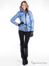 Стеганный пуховик, с ассиметричной простежкой, главным отделочным элементом являются оригинальные черные молнии, двойная горловина.