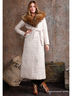 Эффектный длинный пуховик. Широкий меховой воротник. Застежка спереди. На спине шлевки для пояса. Изделие дополнено поясом.