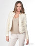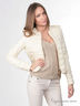 Классический женский пуховик укороченной модели. Круглый вырез горловины. Застежка спереди на молнию. Плечи декорированы погонами. Два накладных кармана м клапанами на кнопке.