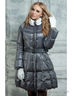 Стильный пуховик приталенного силуэта. Высокий ворот-стойка. Застежка на молнию. Длинные рукава расширяющиеся от локтя. Расклешенная нижняя часть изделия.