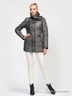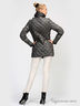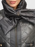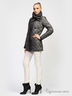Стеганный пуховик средней длины, прямые рукава с манжетами, застежка-молния спереди, карманы: два на груди и два на уровне талии, воротник-стойка завязывается на декоративный бант.