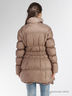 Стильный пуховик с длинными рукавами и воротником-стойкой. Модель приталенного кроя выполенан из качественного материала привлекательной расцветки. Изделие с застежкой на молнию спереди дополнено поясом на талии. Отличный вариант на каждый день.