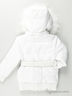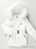 Теплый пуховик выполнен из джордана с пуховым утеплителем. Ворот-стойка, съемный капюшон с натуральным мехом, застежка на молнию и на ветрозащитный клапан с кнопками, длинный прямой рукав, два прорезных кармана на молнии, в шлевки продет эластичный пояс с металлической застежкой.