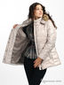 Пуховая куртка с капюшоном и застежкой на молнию. Ветрозащитный клапан с застежкой на кнопки. Капюшон отстегивается от изделия, мех отстегивается от капюшона. По бокам изделия - удобные втачные карманы с застежкой на кнопку. Внутри пуховика шелковистый подклад, втачной карман на молнии и накладной карман на пуговице.