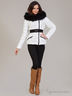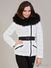 Стильный молодежный пуховик укороченной длины. Для подчеркивания прилегающего силуэта на талии сделана эластичная вставка из основного материала. Капюшон оторочен по краю съемным натуральным мехом енота. В качестве дополнения прилагается пояс с металлической пряжкой.